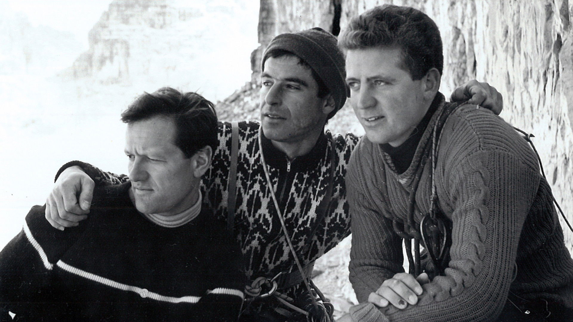 Three famous climbers, the Frenchman Pierre Mazeaud, the German Winfried Ender and the Italian Roberto Sorgato, meet up at the bottom of the Tre Cime di Lavaredo and decide to join together in a single roped party, climbing the 'Direttissima' on the north face of the Cima Grande di Lavaredo. The beautiful film illustrates with precise sequences the climb of the route, that was opened in 1958 by the filmmaker himself, Lother Brandler. The film wants to highlight the idea of frienship, cooperation, fraternity and peace showing three men from historically-confronted nationalities roped and working together as a single team. The film won the Grand Prix at the Trento Film Festival in 1964.